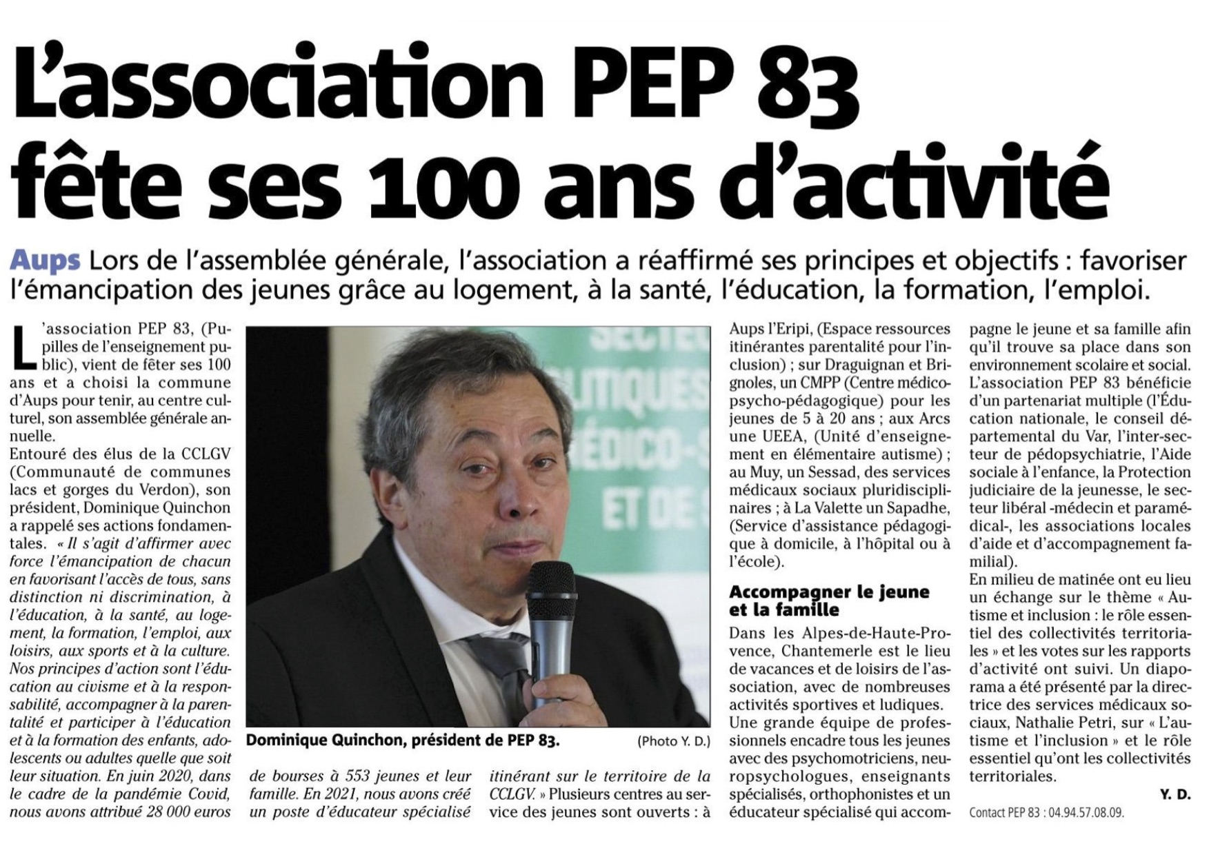 Assemblée Générale 2019 : Mercredi 24 avril s’est tenue la 101ième AG de l’AD PEP83 à Ste Maxime.