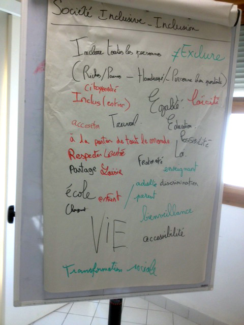Cynthia se joint à eux pour rédiger un projet d'accompagnement dans la perspective d'une société inclusive. Après 35 min de réflexion collective, animée et riche, ils présentent leur projet.